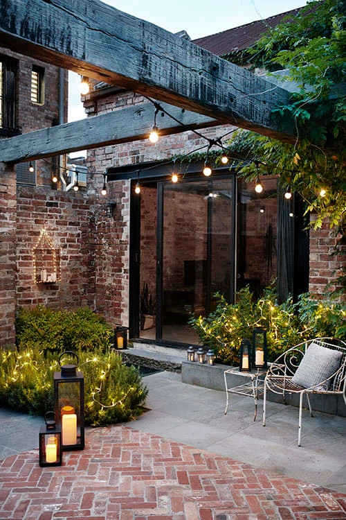 Una buena opción para resaltar árboles es elegir una luminaria de abajo hacia arriba o colgar algunas guirnaldas de luces tipo kermesse.
