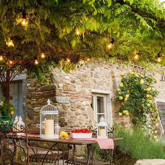 Si querés darle un toque de magia y protagonismo a tu jardín, las guirnaldas tipo kermesse son las candidatas ideales, ya que resultan de lo más decorativa y son una alternativa más económica si se la compara con otras mencionadas anteriormente.