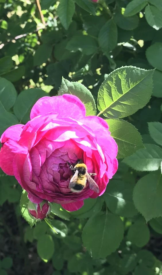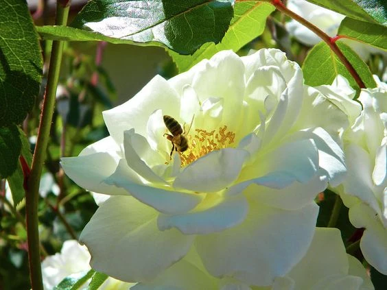 Una de las especies que más aman estos pequeños visitantes son las rosas de pocos pétalos y estambres a la vista.