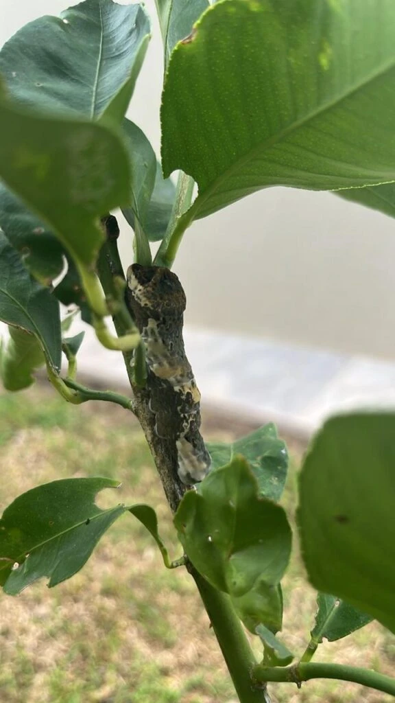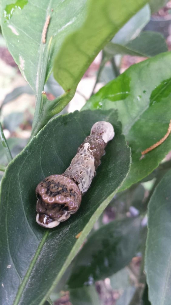 Si tenés cítricos en tu jardín, especialmente un limonero, es probable que alguna vez te hayas cruzado con este gusano. Para que tengas una idea, se trata de la oruga de la mariposa limonera más grande la zona (Heraclides thoas).