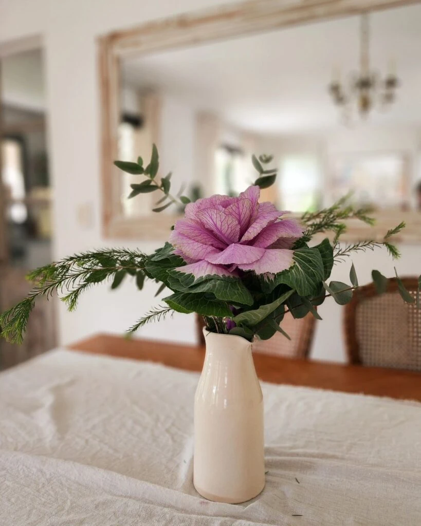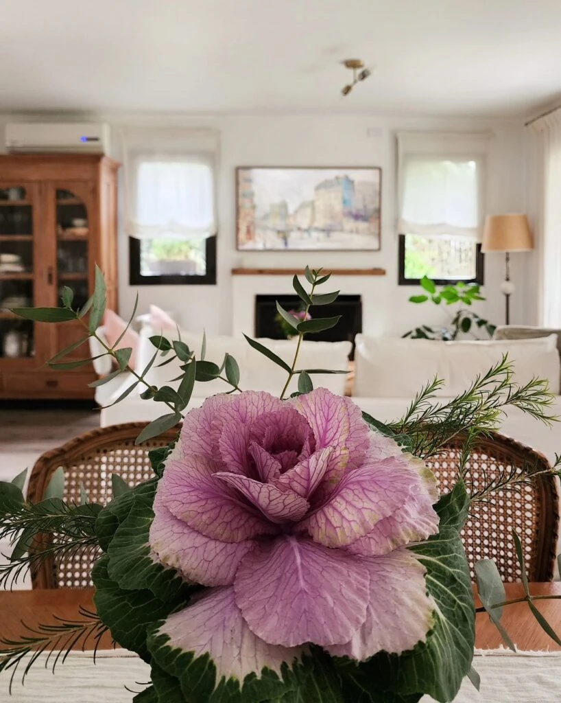 “En Invierno no hay tanta variedad de flores. Pero entre otras aparecen los repollos ornamentales que me encantan”, expresó la decoradora en el posteo junto a un carrusel de imágenes mostrando lo bien que quedan como centro de mesa.