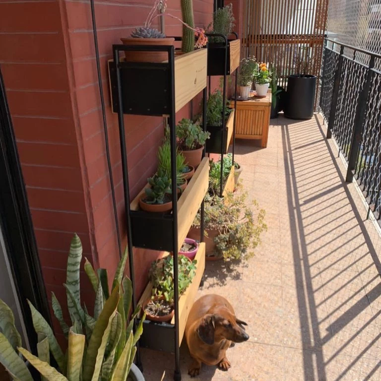 - Todas las suculentas fueron unificadas en un estante vertical, junto a otro con aromáticas.