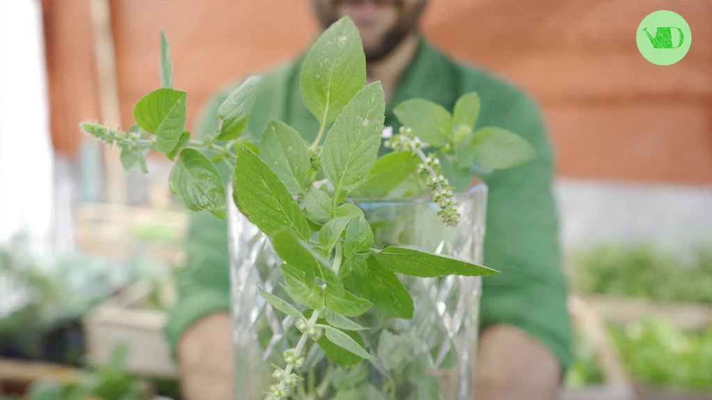 "La albahaca Tulsi tiene la propiedad aromática de la albahaca y se puede reproducir mediante propagación sexual o asexual a partir del corte de uno de los vástagos" comienza explicando Matías al equipo de De Raíz.