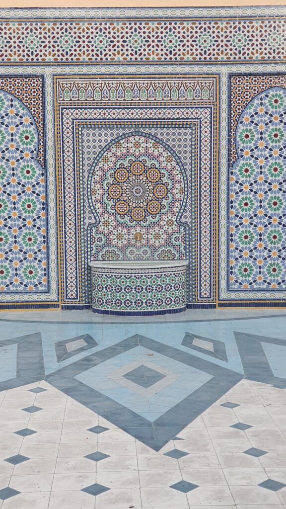 También hay otras dos fuentes de agua proporcionadas por la Embajada de Marruecos y otros elementos ornamentales con la misma influencia.