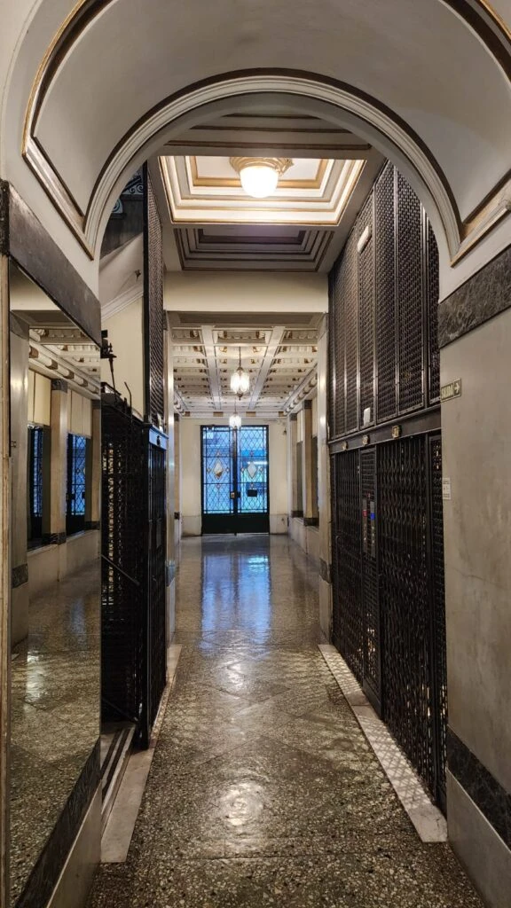 Este edificio ecléctico fue uno de los rascacielos más altos de la ciudad en su tiempo. Como ya dijimos, fue realizado por la empresa austrohúngara Bencich Hermanos, constructora que buscaba que sus desarrollos fueran obras para admirar y suspirar.