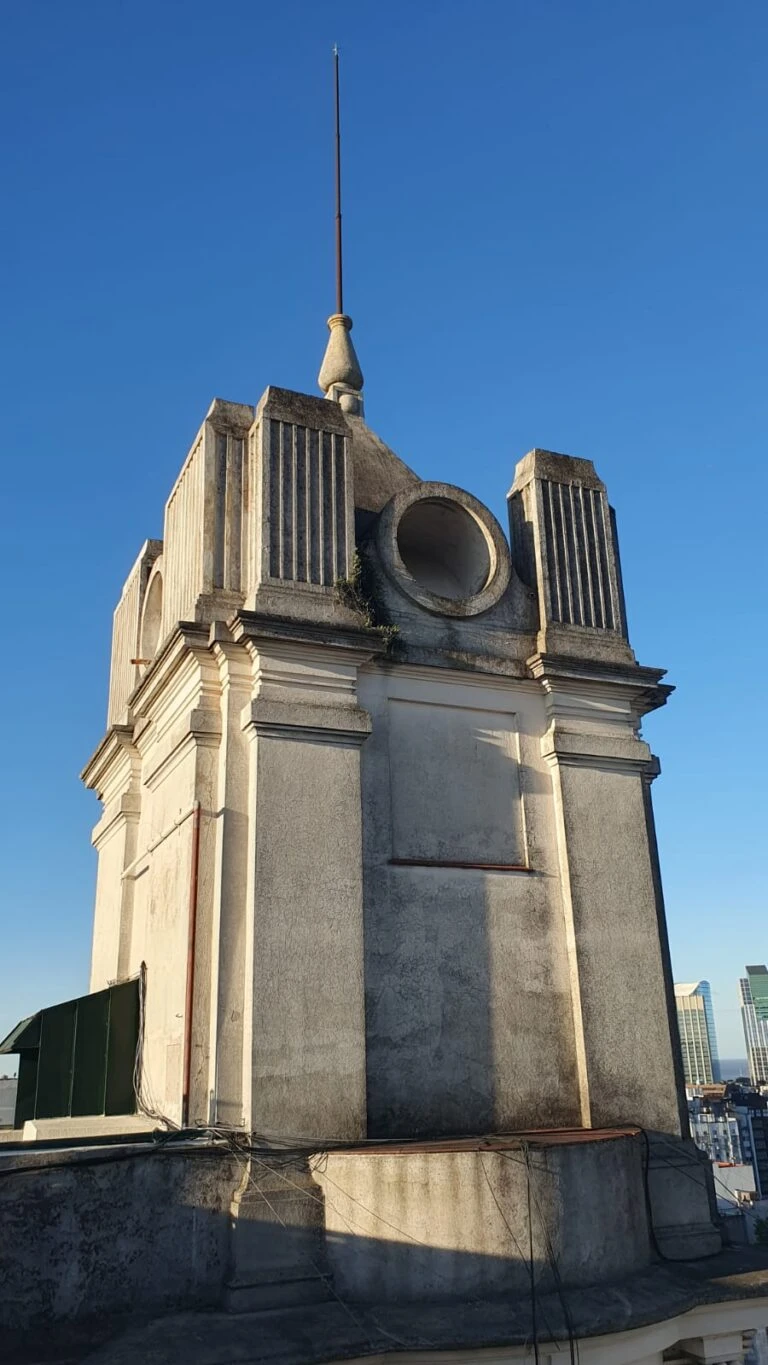 La inspiración marroquí que se aprecia en el último piso, Le Monnier la habría encontrado en sus viajes a Argelia y Marruecos. Desde la vereda de enfrente se lucen las dos torretas que son de estilo muy diferentes a otros remates que conocemos de esta desarrolladora y de este afamado arquitecto del primer cuarto de siglo.