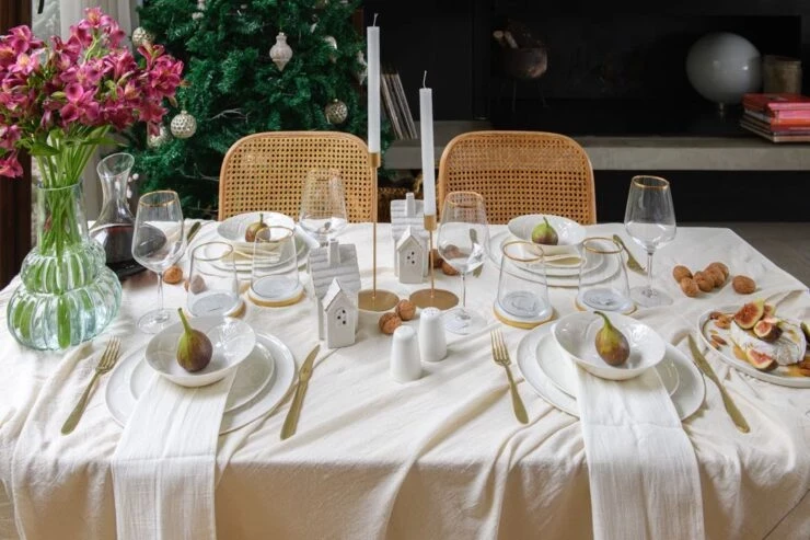 Podés combinar con manteles neutros con servilletas de colores vibrantes y detalles dorados o plateados para un toque chic.