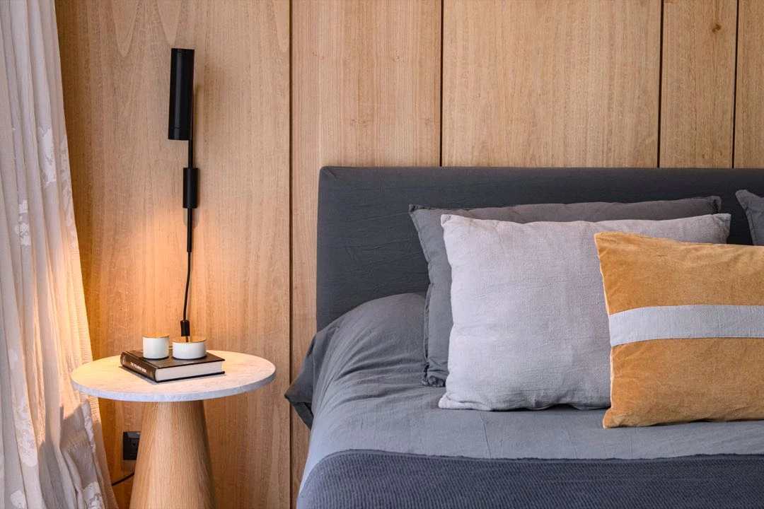 Las cabeceras con mesas de luz flotantes incorporadas resuelven ambas funciones en un mismo y único accesorio, de ahí su practicidad. Son ideales para espacios chicos o que buscan una mayor liviandad visual.