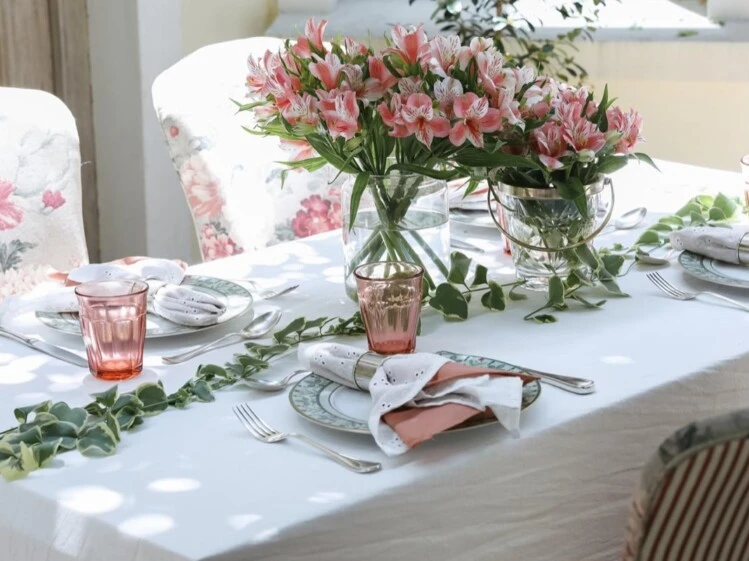 Para sumar aires de sofisticación se pueden alternar distintas alturas de jarrones, incorporar velas en tonos neutros o incluir textiles delicados como individuales tejidos o servilletas con bordes artesanales.