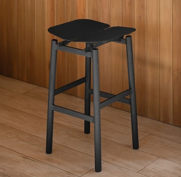 El Taburete Vuelo de Juan Ignacio Martin, Santiago Mori y Juan Angel Zanin, combina estructura simple, asiento de líneas marcadas e íntegra construcción en hierro pintado al horno.
