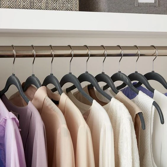 Las perchas de pana o velvet hangers son las mejores para colgar ropa liviana como blusas, tops, vestidos y camisas, ya que ahorran espacio, evitan que la ropa se resbale o arrugue y mantienen la forma.
