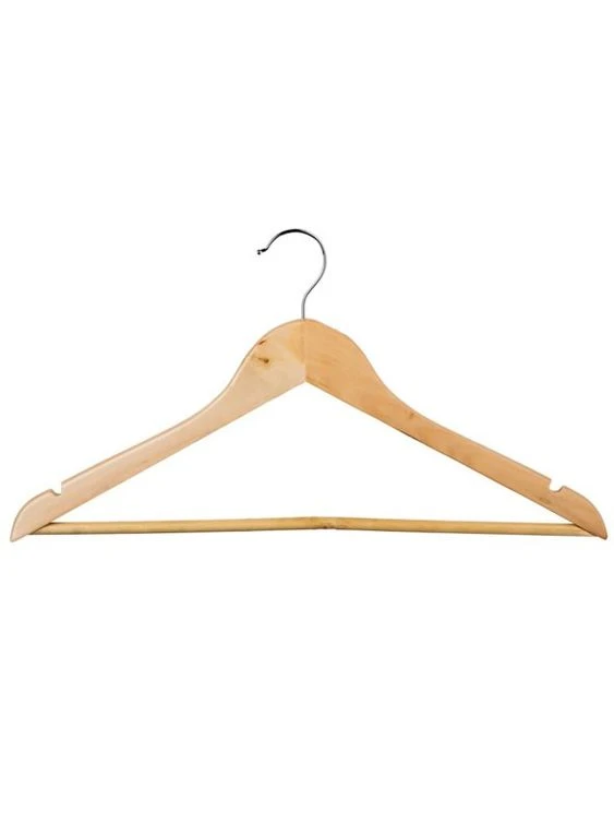 Para colgar sastrería y abrigos, las perchas de madera con hombros totalmente moldeados que imiten la forma de la prenda son la mejor opción. Además, este tipo de percha tiene una barra horizontal de fieltro que sirve para colgar, por ejemplo, un traje completo (saco y pantalón).