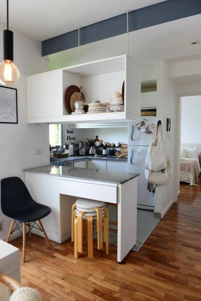 Pero en cómo hacerlo está la clave: para lograr un buen resultado sin cerrar (y que el espacio parezca aún más chico) nada mejor que elegir muebles abiertos que permitan el paso de la luz natural.