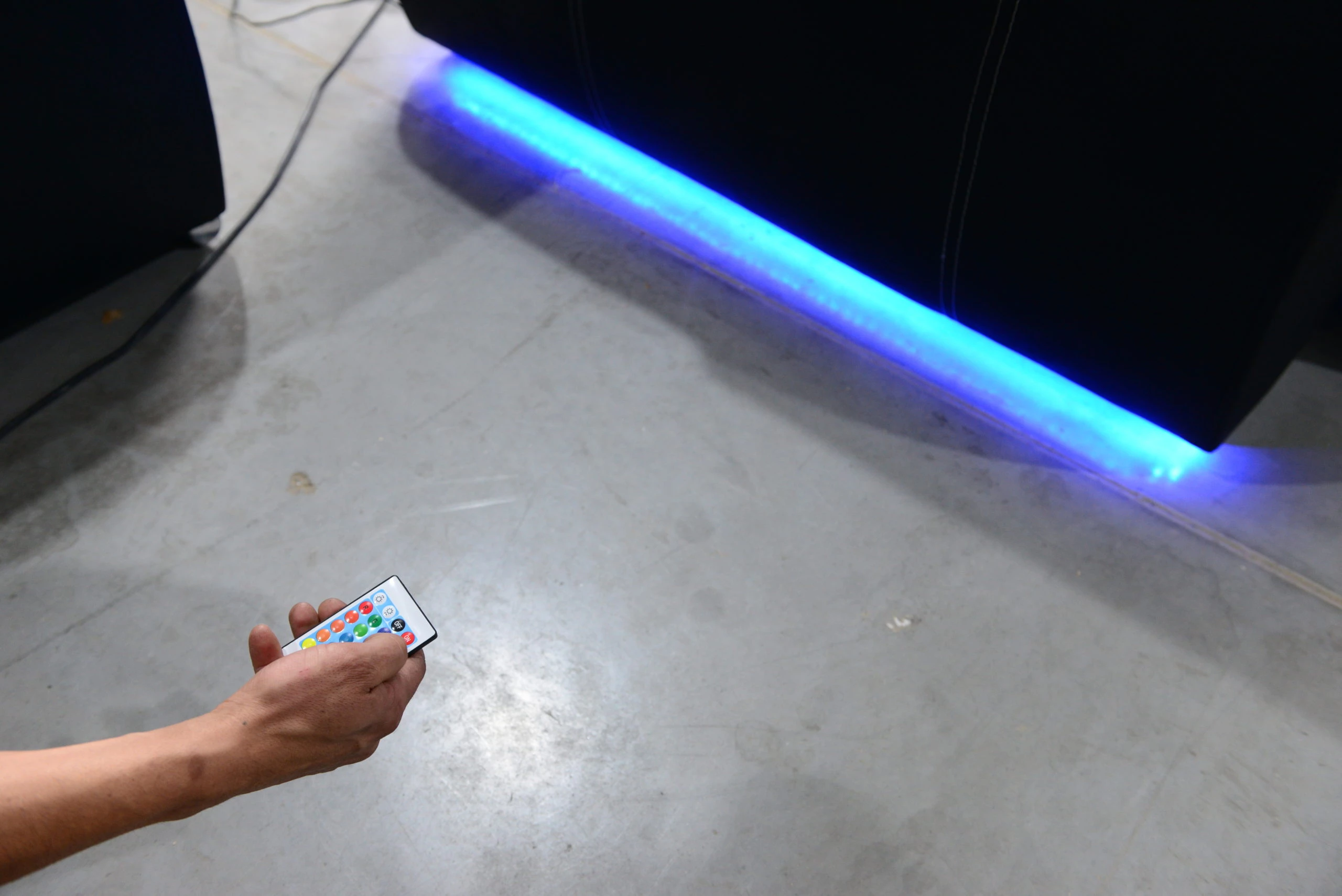 Entre las líneas de sillones de Abugar (además de la outdoor) se destaca la colección Tech, la más tecnológica, que comprende a los modelos Olympo, Galaxy, Victoriano y Buda. Cuenta con conexión Bluetooth, sistema de audio, sistema de luces led en brazos y se pueden transformar en cama. A raíz de la dinámica de producción que poseen, el tamaño se define de acuerdo al espacio solicitado por el cliente. También se puede seleccionar el tipo y el color de la tela.