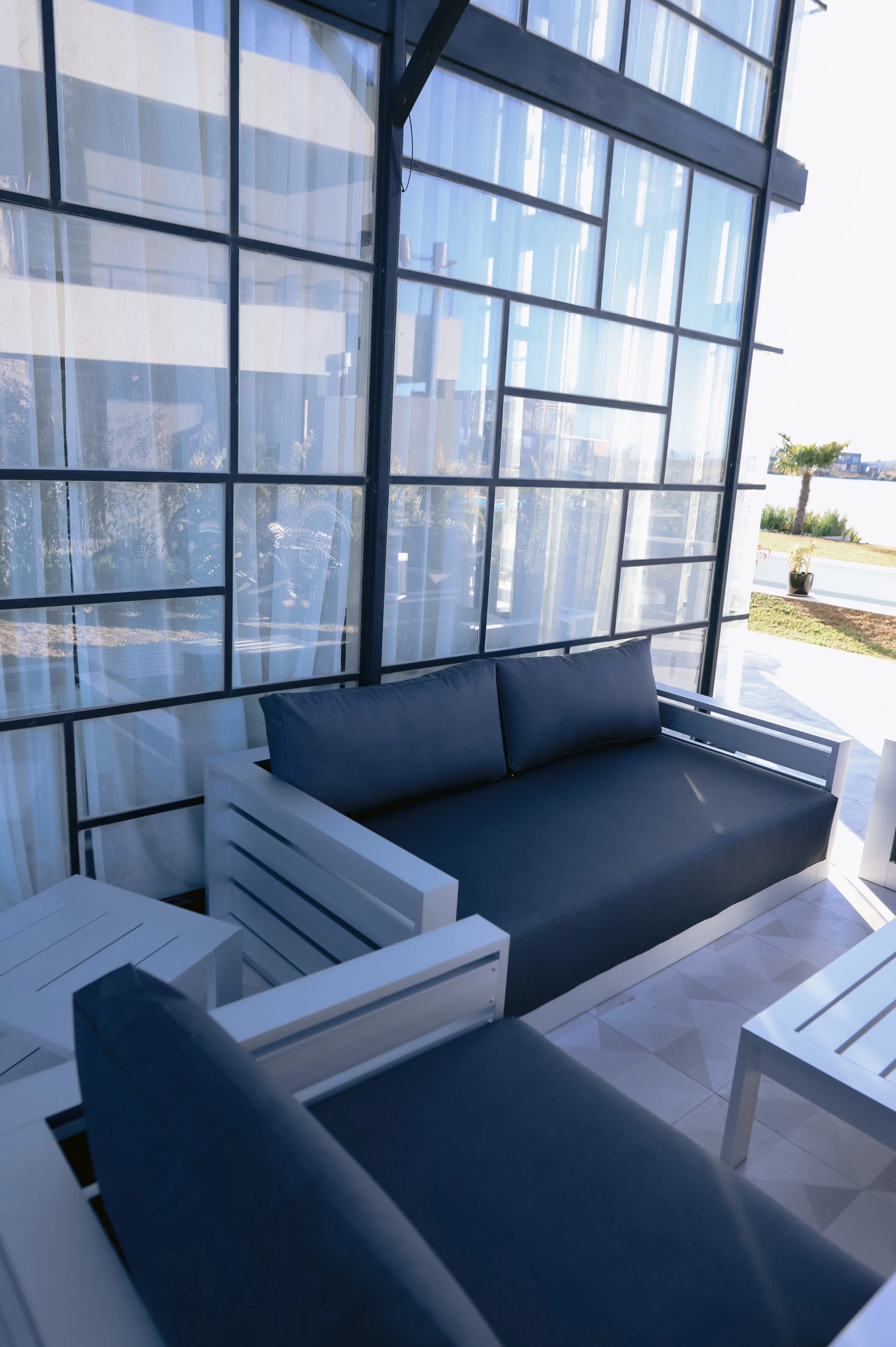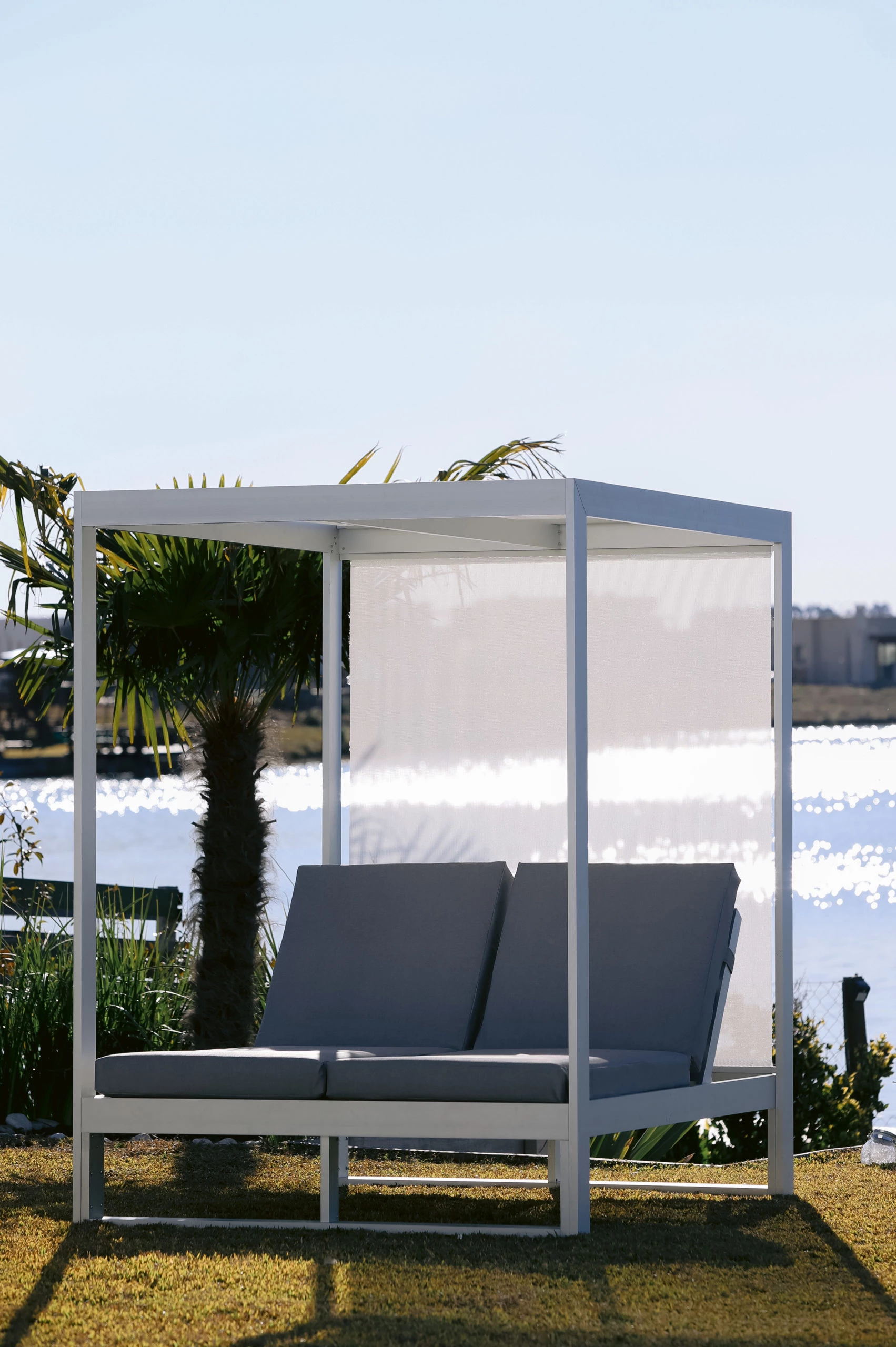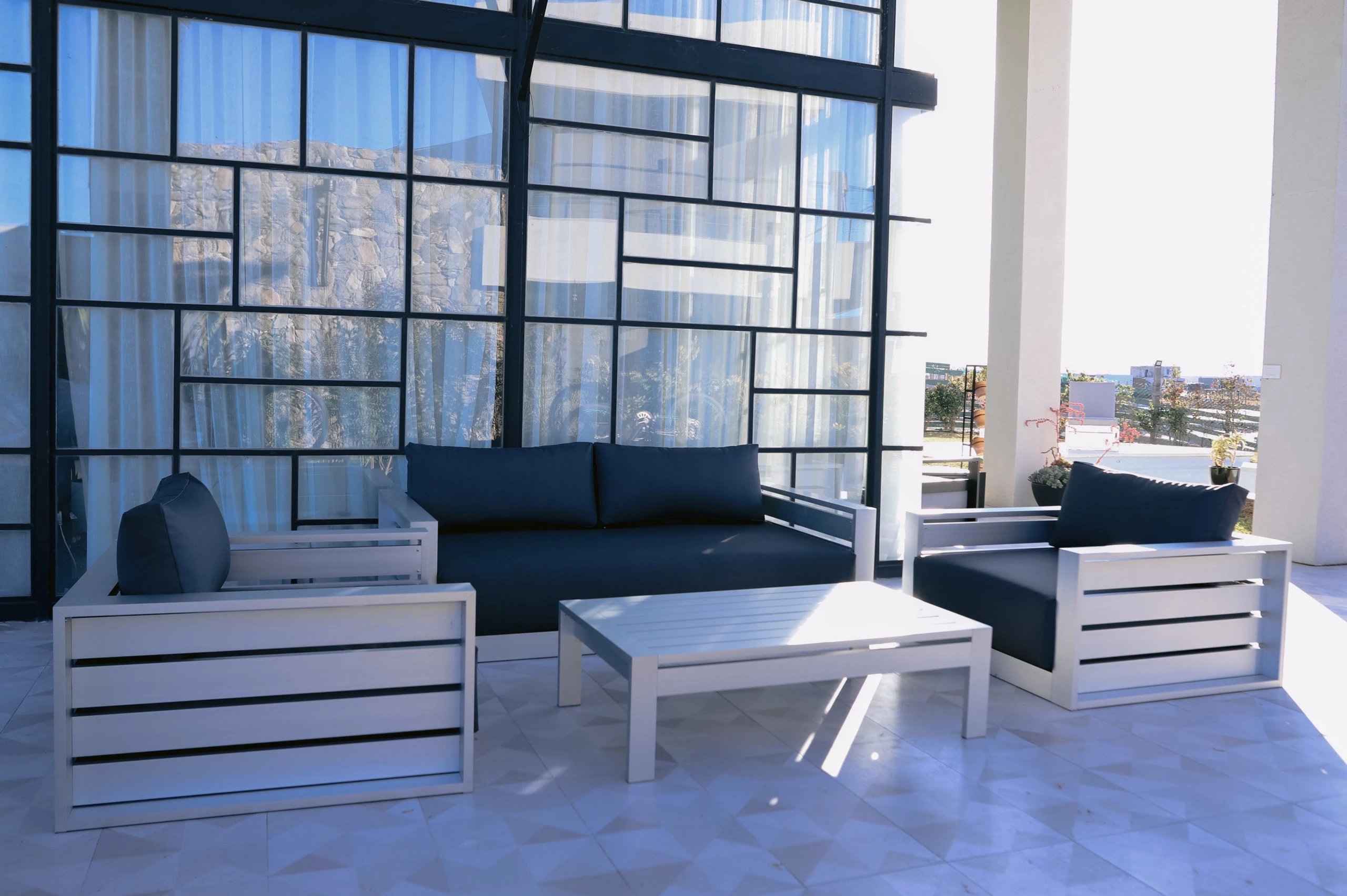 La gama outdoor se fabrica a partir de acero ionizado y telas náuticas, que se pueden exponer a factores climáticos sin experimentar daños sobre el producto.
