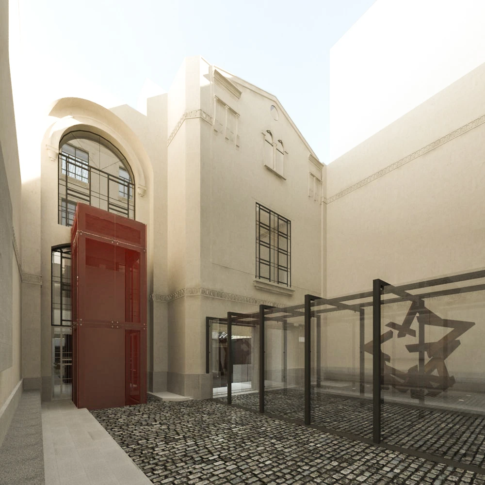 El final del itinerario da a un patio donde se halla una escultura en hierro de Roberto García Balza inspirada en la Estrella de David.
