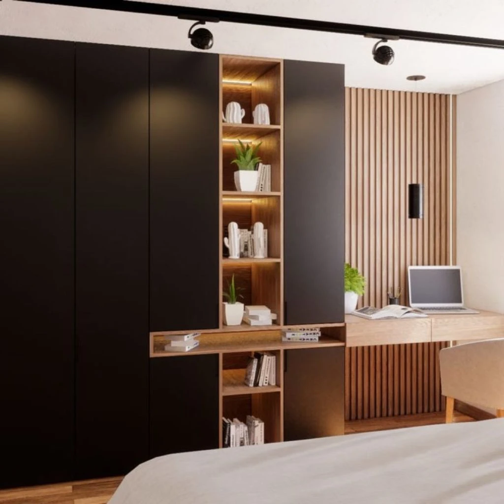 El total black desembarcó la temporada pasada en dormitorios y espacios de trabajo. Y aunque se apostaba a su dominio absoluto, pronto llegó la madera para suavizarlo.