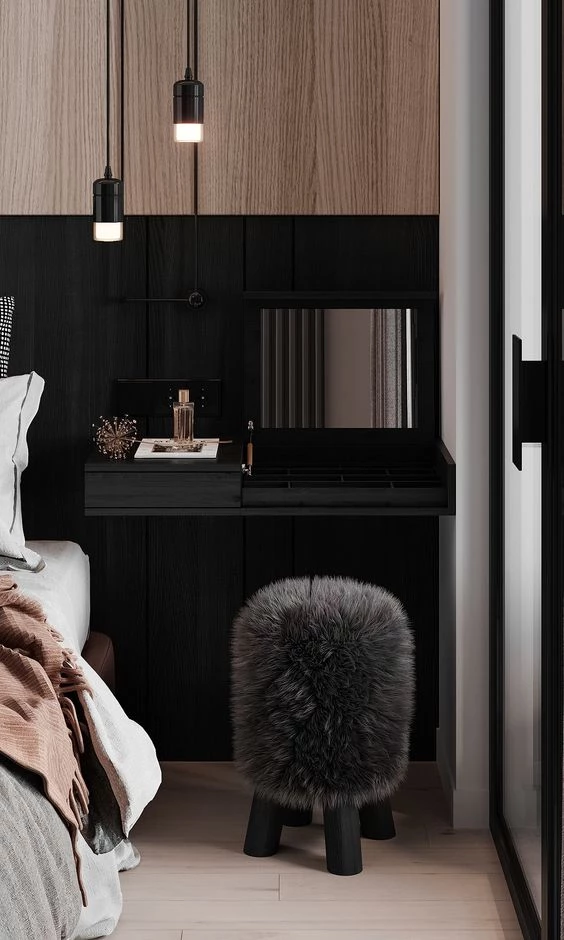 Negro + madera en dormitorios