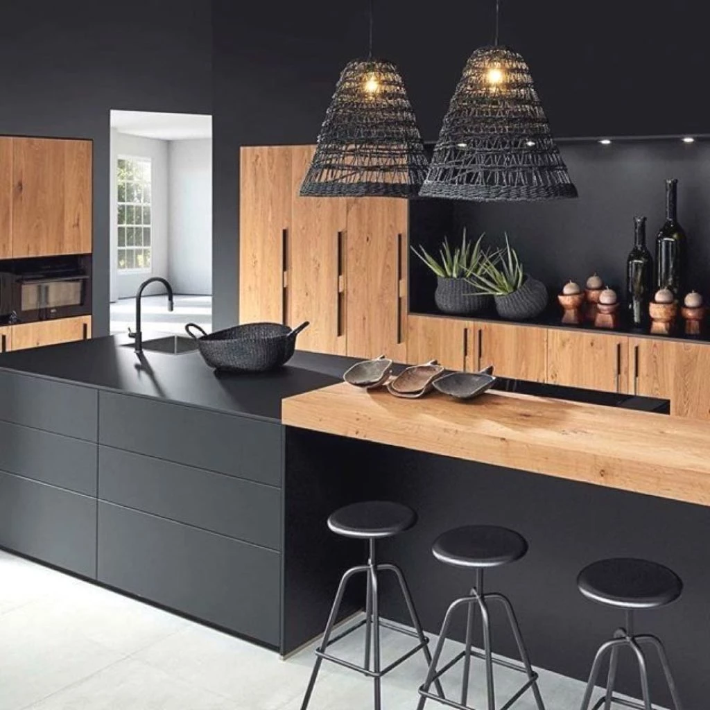 Un contraste justo entre material y color que transmite personalidad y modernidad en cocinas, baños e incluso dormitorios. Mirá estas propuestas e inspirate para unirte al club de la dupla tendencia: negro + madera.
