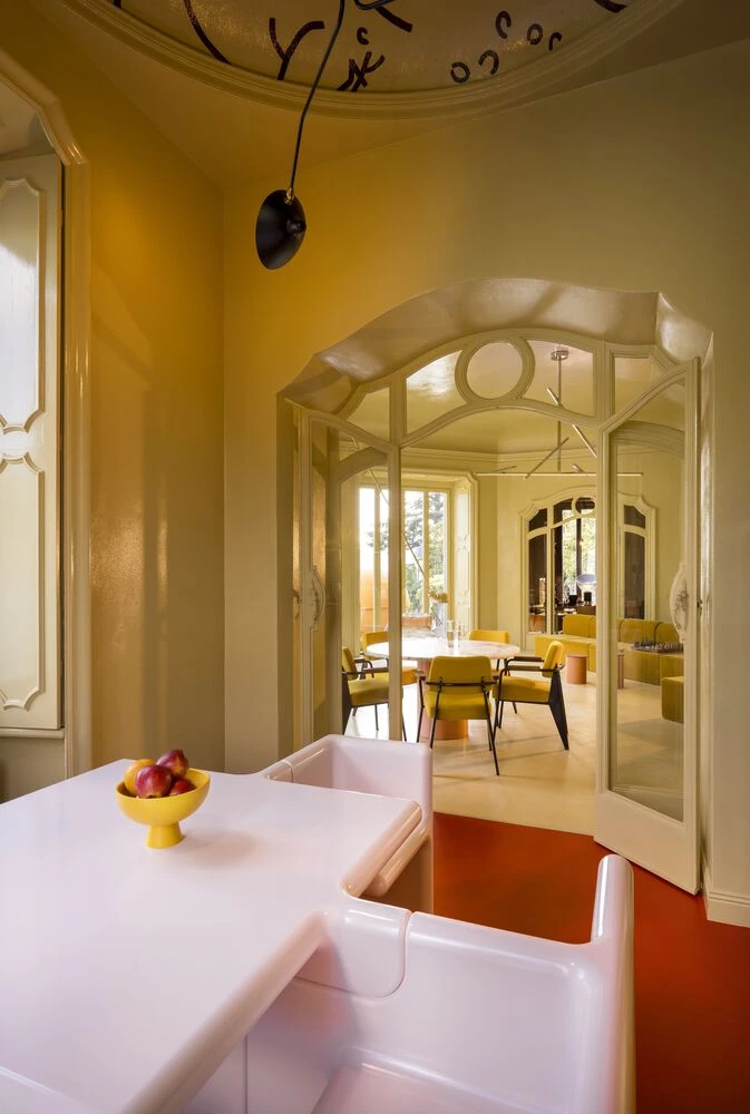 Como guiño al pasado, el pintor parisino Matthieu Cossé diseñó los techos de las dos habitaciones esquineras con espejos, que albergan la cocina y el estudio.