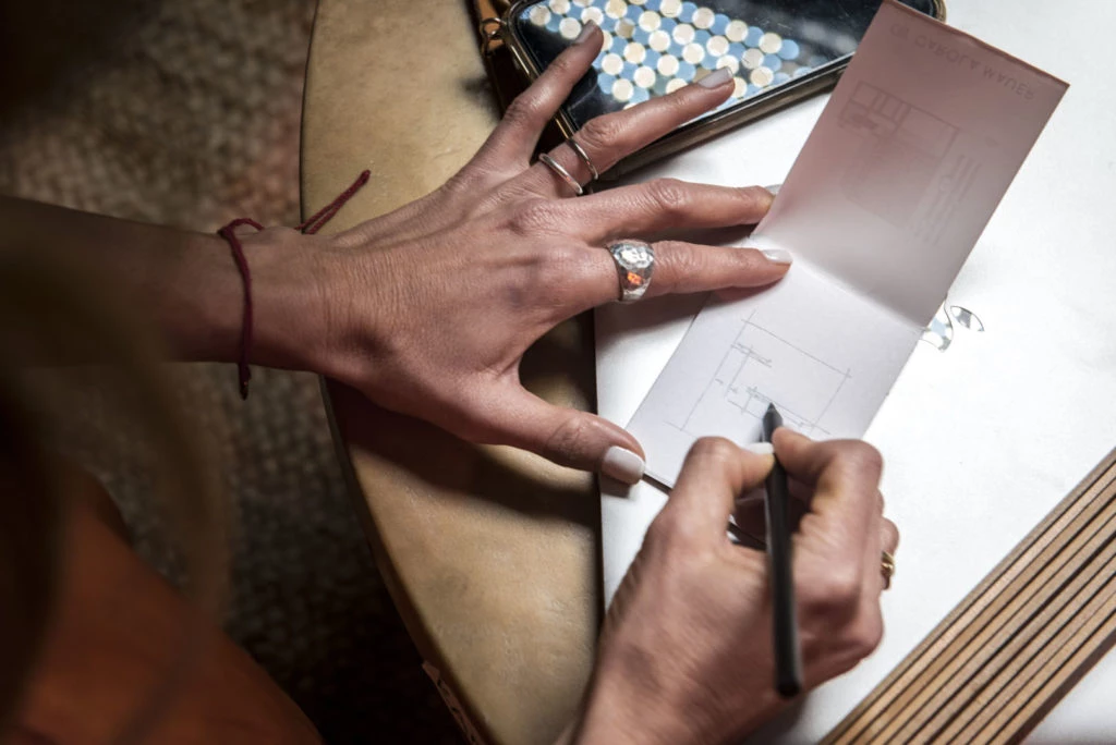 Entre risas y mucha emoción, Carola recordó la anécdota de que cuando estaba en el sanatorio que acababa de nacer su hija, se inspiró en una mesa de luz con esterilla para graficar. " Los momentos de inspiración son inesperados y llegan cuando menos lo esperás. "No tiene nombre esa mesa, pero podría ser Helena porque nació con ella", expresó. Así, gracias a un lápiz, una hoja y la Notebook, Carola pudo materializar esa mesa de luz.