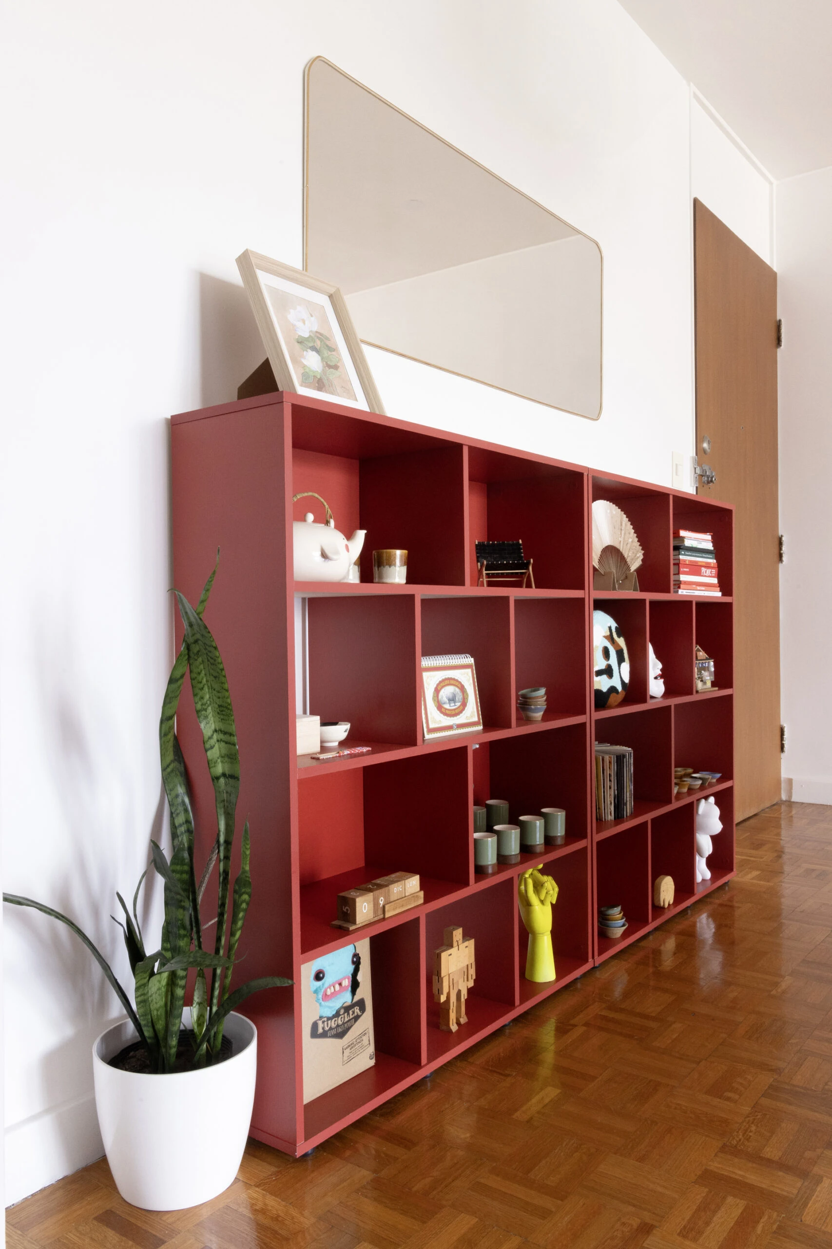 Otro de los colores que se repite a través de los espacios del hogar de Caro y su familia, es el rojo. "Me gusta mucho el estilo asiático, oriental. Entonces el color rojo está muy presente en mi departamento en distintos puntos, a modo de acento", comenta la diseñadora.