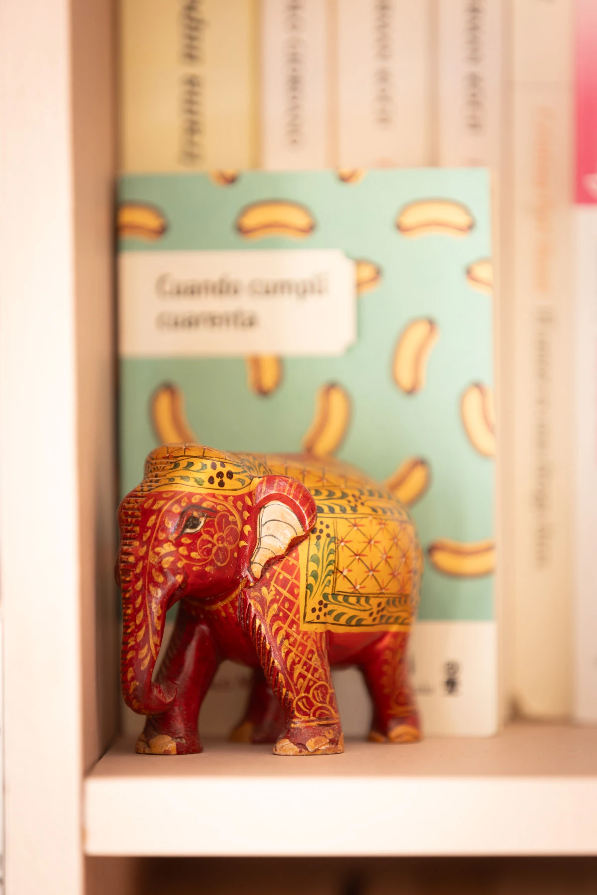 Otro elemento inconfundiblemente propio es la biblioteca y todos sus libros. Son 860 libros aproximadamente (cálculo que surgió espontáneamente durante la producción).