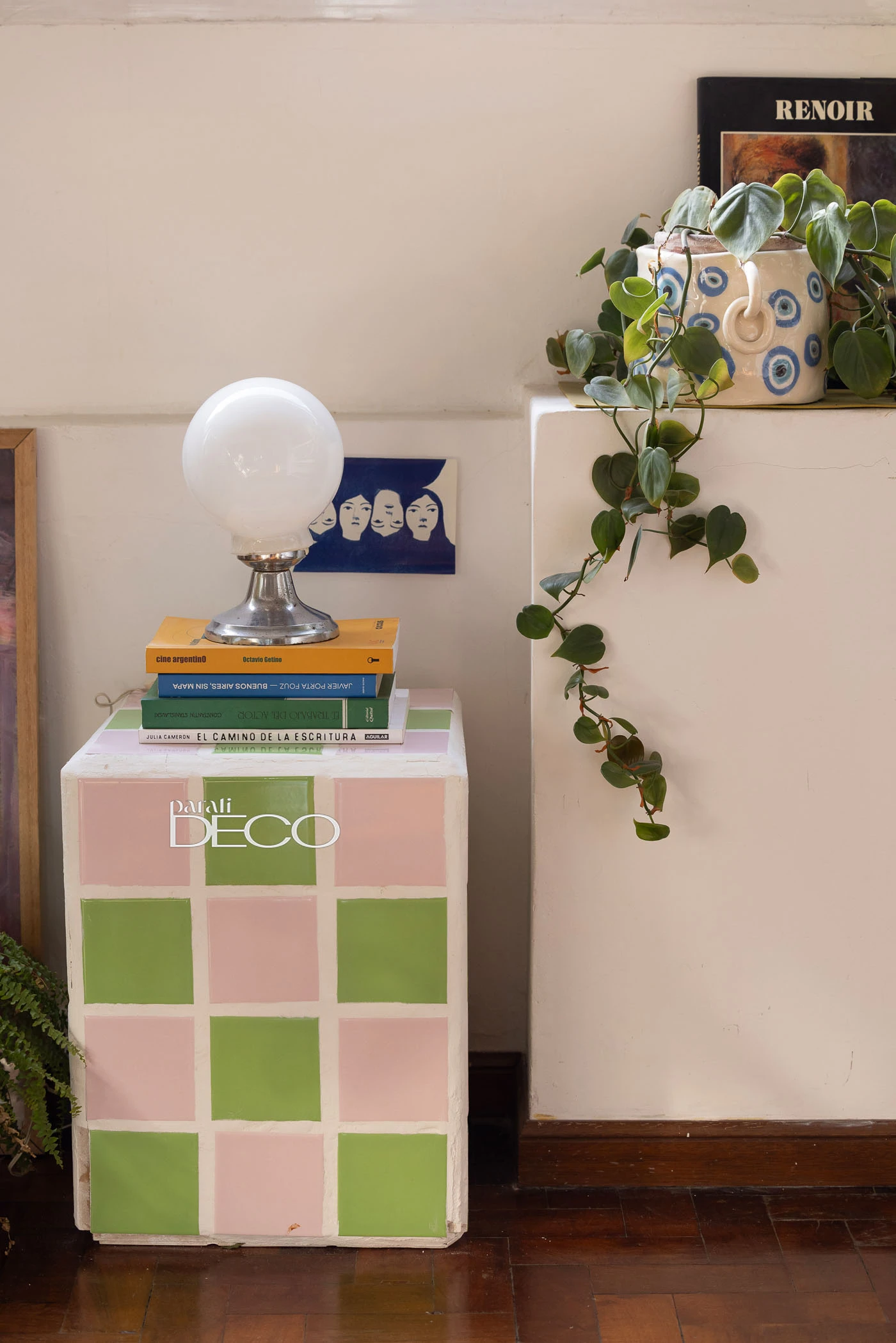 “No sé si mi depto encaja en un estilo muy definido, pero si tengo que ubicarlo en un tiempo, diría que tiene alma setentosa. Me encantan los muebles bajos, las curvas, el cromo, los colores con presencia. Lo retro me llama, pero no desde lo literal, sino desde lo afectivo. También mezclo con cosas que encuentro, heredo o invento. No busco que todo combine, sino que me haga sentir bien”.