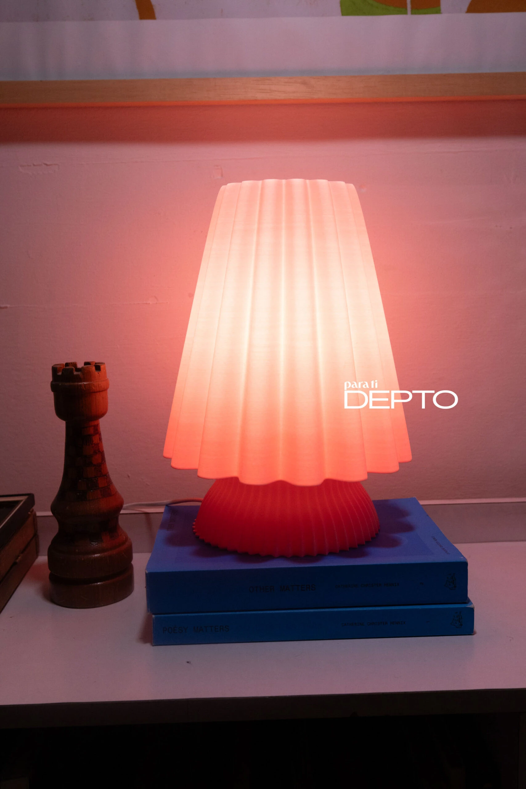 Hay otros espacios protagonistas en la recorrida por el departamento de Vero Escalante, como el rinconcito con la lámpara color naranja y el cuadro de la boca (de Estudio Sach) en el living. “Funciona como una especie de altar, con velas y objetos que amamos”, lo describen.