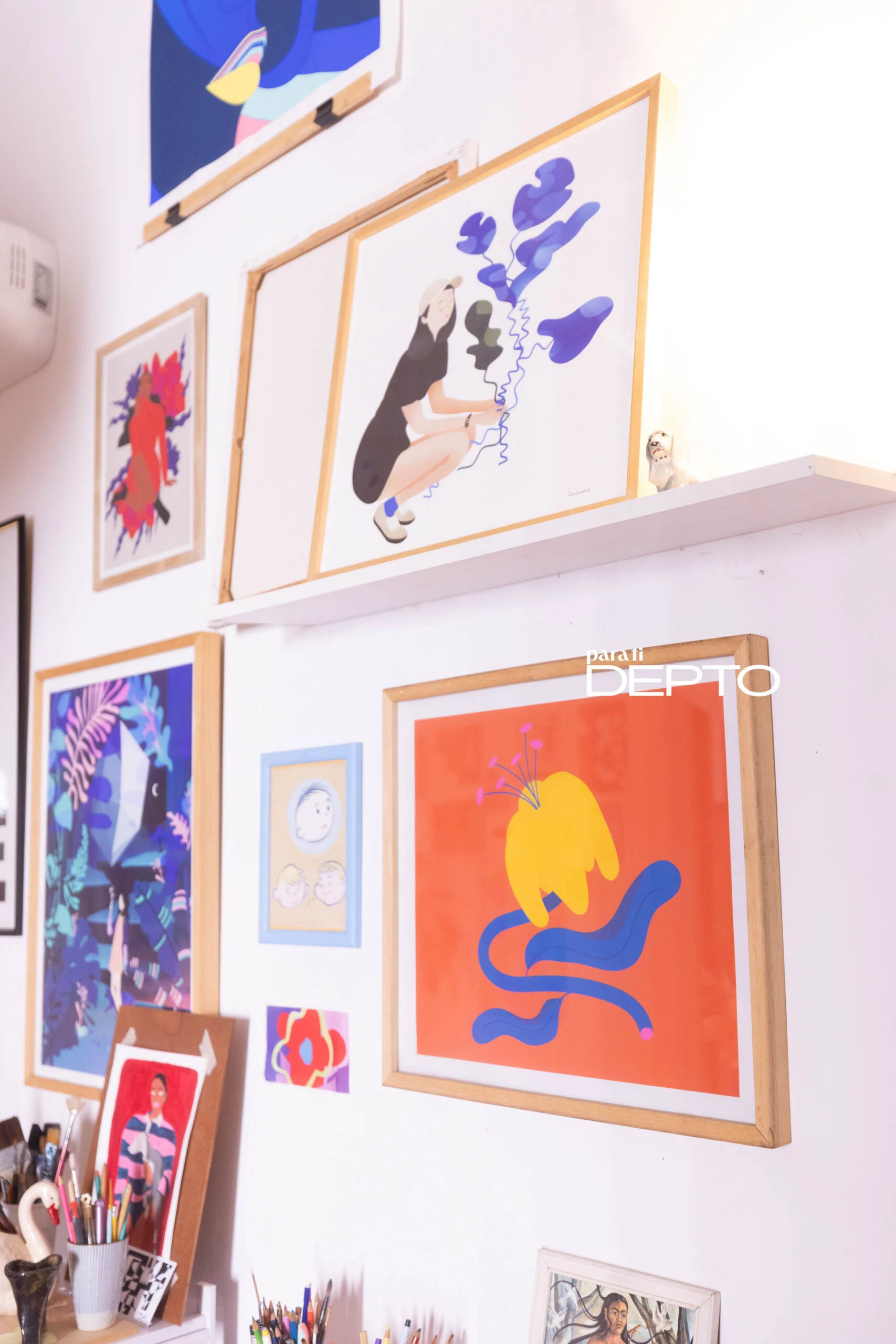 Sobre ella, hay dos obras enmarcadas de Atelier Citrus que se consagran como punto focal clave de la casa, en EL lugar del hogar-estudio de Vero y Matías.