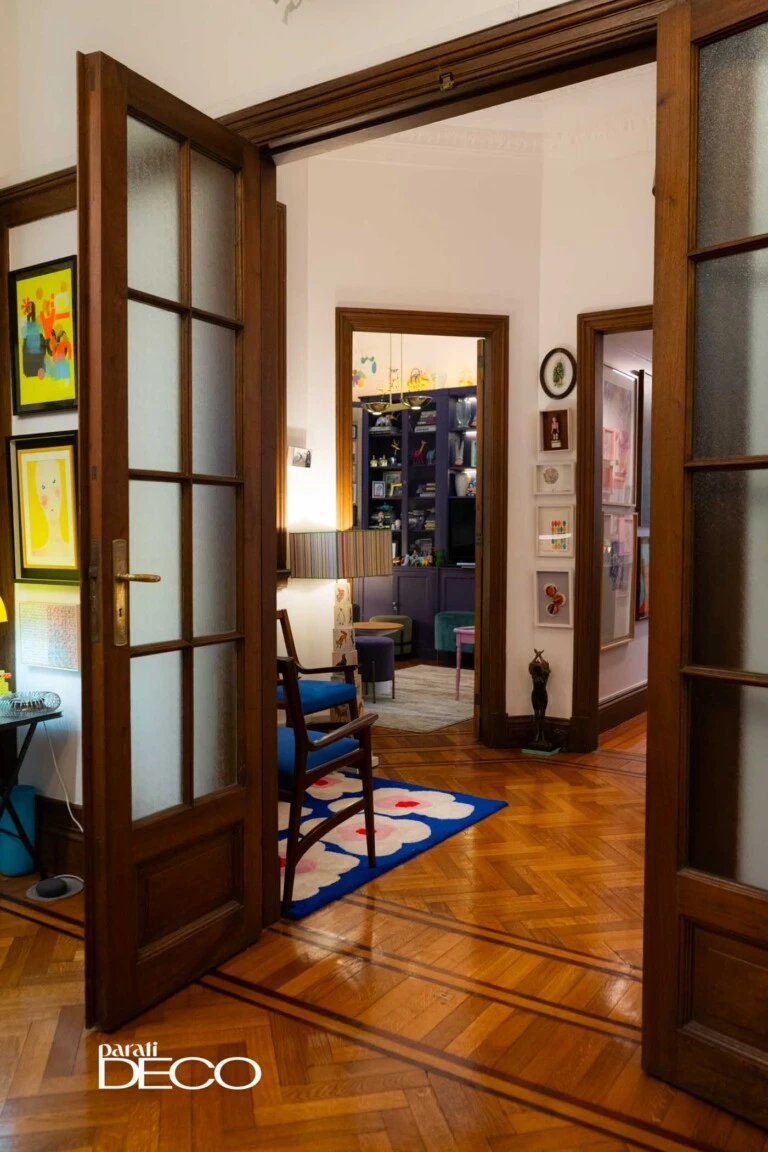 Mariela Ivanier firmó el contrato de su “depto galería” el 19 de abril de 2021, en el día de su cumpleaños, después de visitar otros dos departamentos en esa misma cuadra y descubrir el que sería suyo. “Me enamoré por completo del lugar e inmediatamente sentí que era para mí”, afirma, y recuerda sus primeros gestos personales sobre el histórico inmueble con una inmensa sonrisa.
