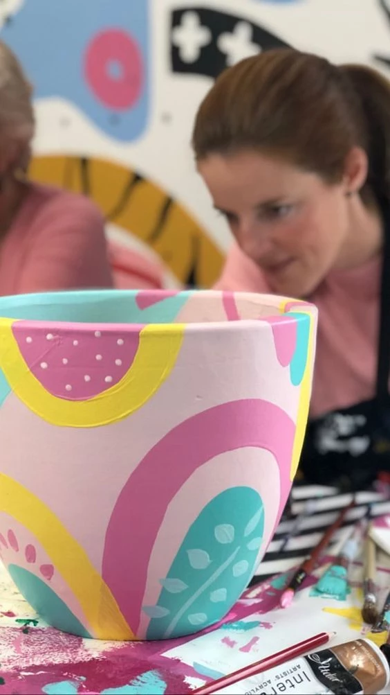 6. Pintá la maceta con pintura acrílica, combinando los colores que prefieras.