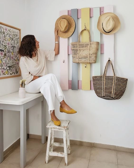 Un pallet viejo, colores pastel atizados y ganchos tipo perchitas de metal fueron suficientes para que Vero Palazzo (@veropalazzo), instagramer de deco y lifestyle, armara este perchero canchero.