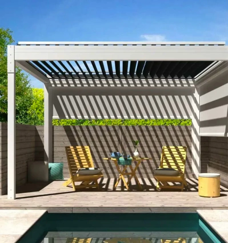 Para hacerla aún más funcional, se pueden instalar algunos extras como: sensor de viento y lluvia (permitiendo que sus láminas se cierren automáticamente), luces LED en las lamas o directamente en el perímetro de la estructura.