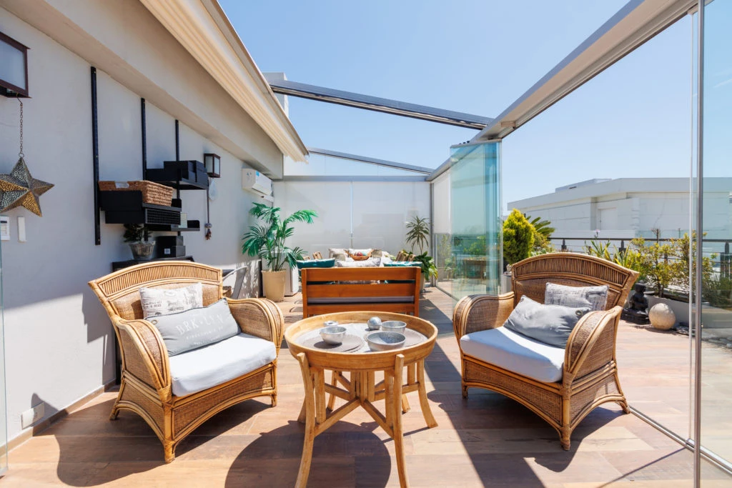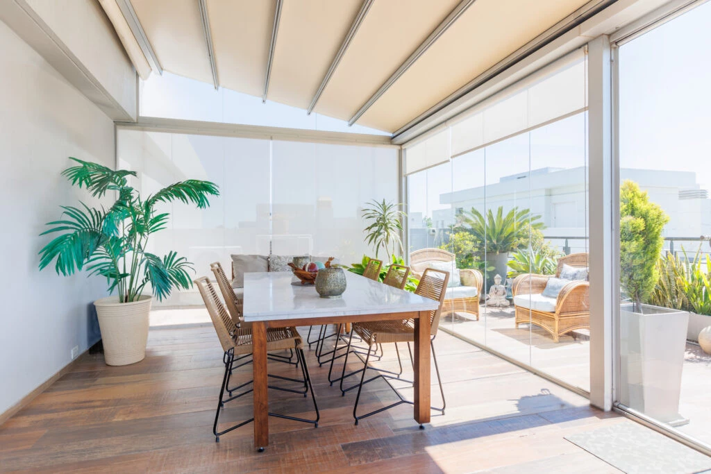 "Las pérgolas de aluminio están compuestas por una estructura con perfilería y lomas basculantes que se abren y se cierran a través de un pistón neumático", explica a Para Ti Deco Laura López, Gerente de la firma Tolder.