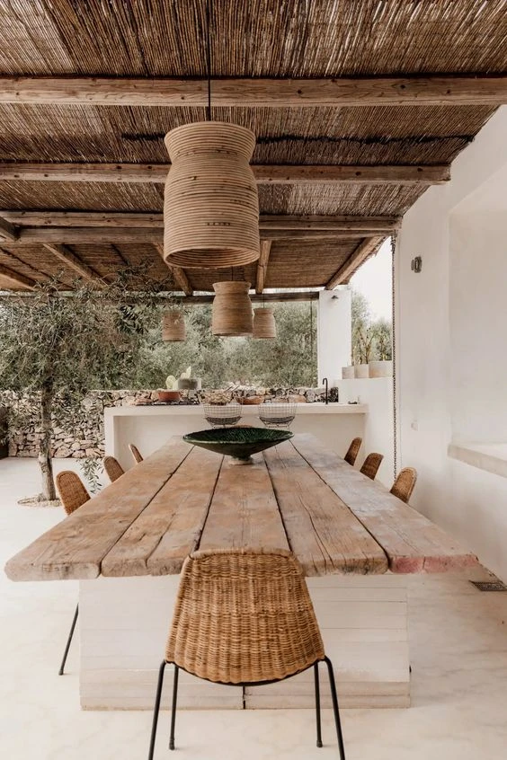 "De aspecto rústico, este tipo de pérgolas crean ambientes frescos y acogedores, al tiempo que decoran de manera única cualquier espacio exterior", suma la interiorista.