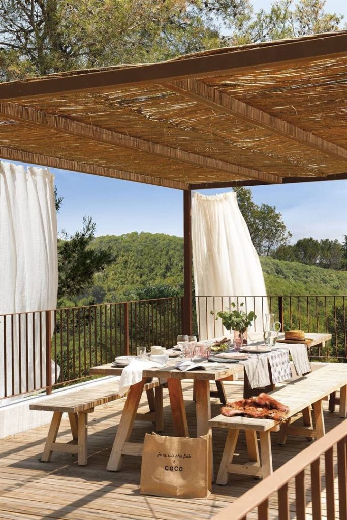 Los materiales naturales son perfectos para terrazas de campo o playa porque se integran muy bien con el entorno. Las cañas son super resistentes y algo más económicas que otras cubiertas.