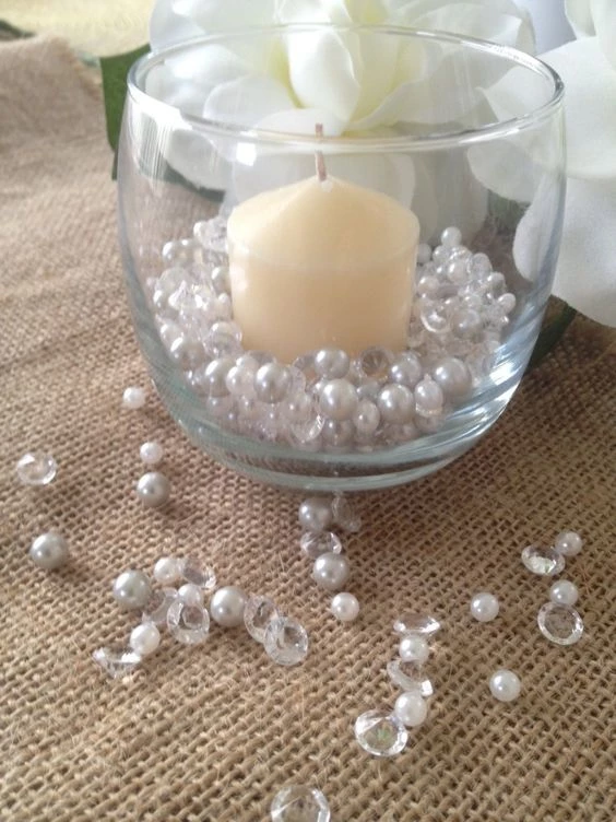 En cuadros, espejos, velas, cajas, bandejas, servilleteros, coronas y guirnaldas, las perlas brillan por sí solas y se convierten en un adorno atemporal, elegante y glamouroso.