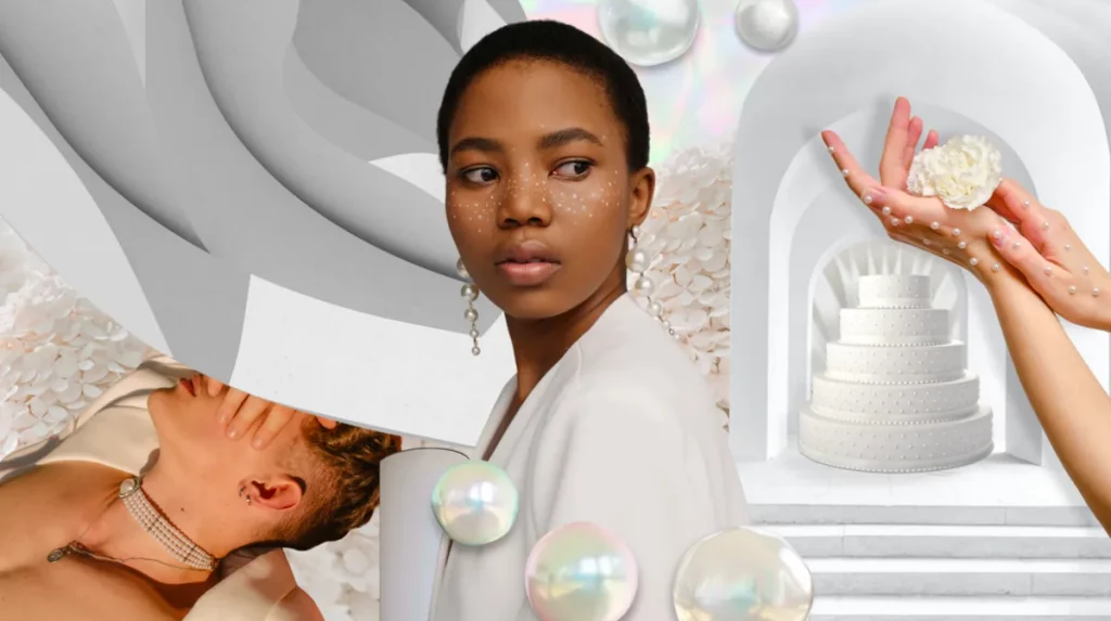 - Una marca relacionada con el hogar puede ayudar a su público a agregar un toque de lujo sutil a la renovación de su hogar con revestimientos de pisos perlados o paredes con pintura satinada perlada. O apostar por formas más accesibles de aprovechar esta tendencia, con marcos de foto de nácar, bandejas decoradas con perlas y almohadas con adornos de cuentas.