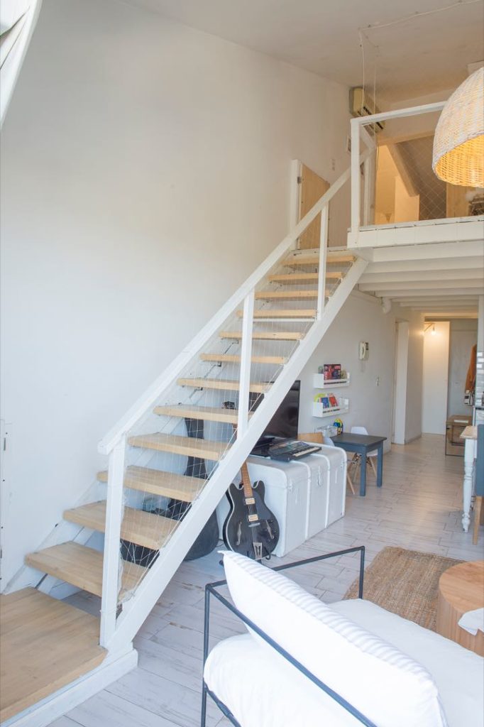 Cuando compró este pequeño depto de 57 m2, la decoradora Lucila Houssay no se imaginaba aún cuánto lo podía aprovechar. Hasta que en plan de reciclaje decidió abrir primero la pared que separaba living y cocina para lograr un concepto integrado y volar luego un entretecho oculto que fue clave para transformar el pequeño depto en un dúplex con un dormitorio en la doble altura, donde habita con su pareja y su pequeño hijo.