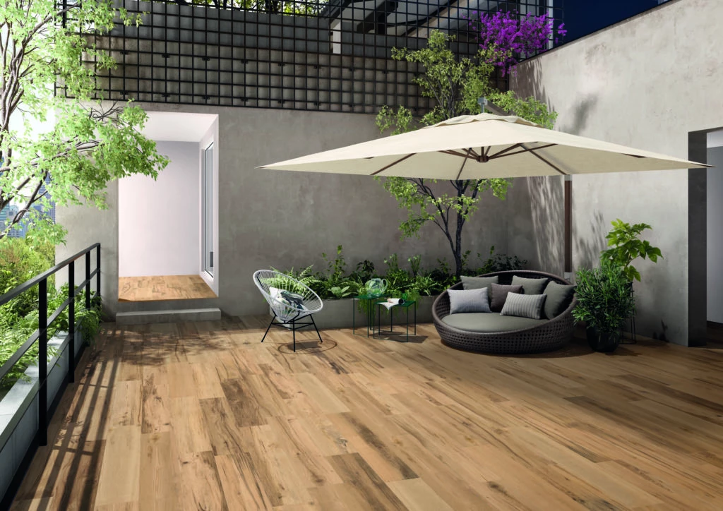 Consultados por Para Ti al respecto de las últimas tendencias en decoración, desde SBG nos cuentan que los porcellanatos estilo madera actualmente son una elección muy buscada entres los clientes ya que brindan colores cálidos, con vetas, nudos, matices y texturas, aportando mucha personalidad a cualquier espacio. Y esa textura de la madera que se percibe al tocarlo es ideal para utilizarlo tanto para pisos como paredes, en interior como exterior con la opción antideslizante, manteniendo exactamente el mismo color en ambos ambientes.