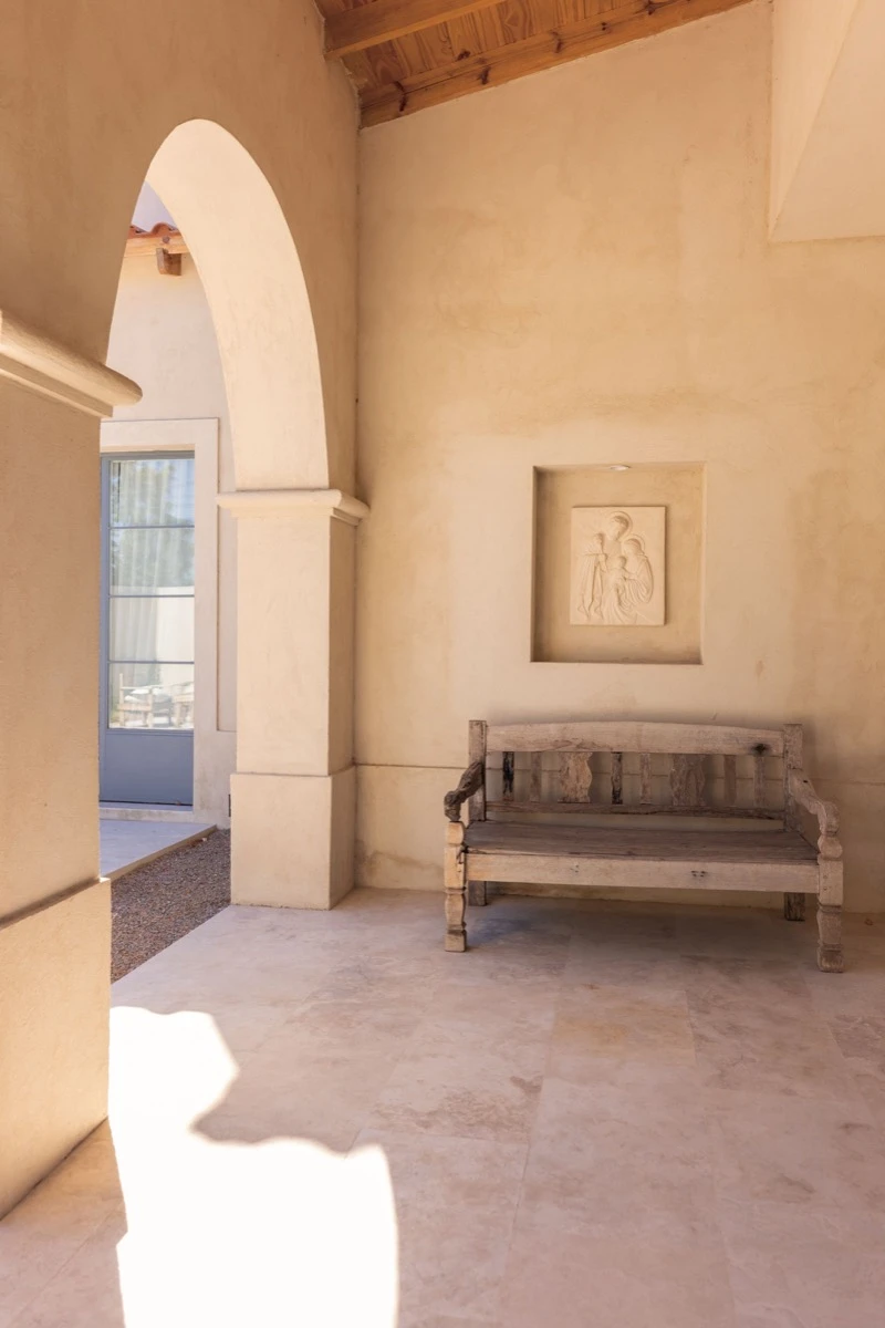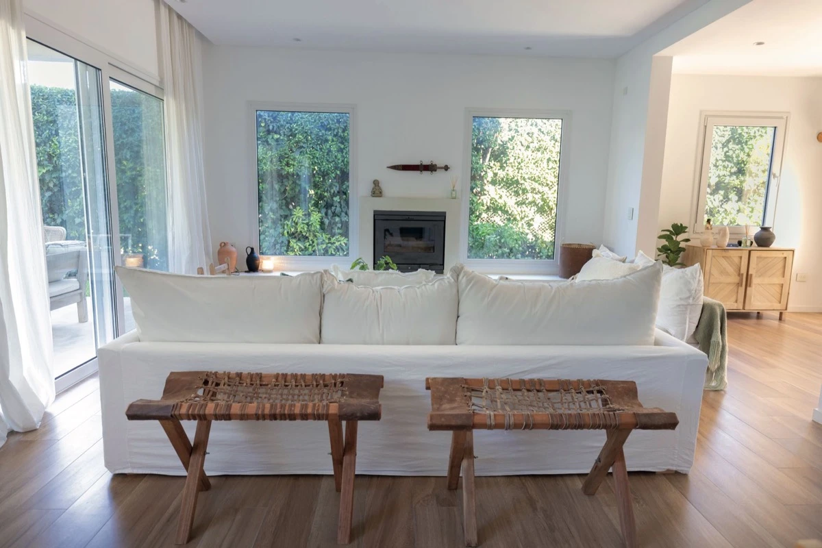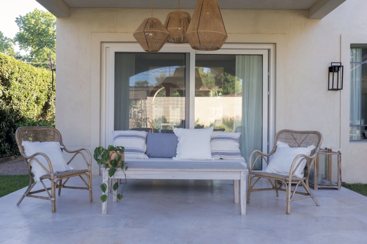Diseñada por el estudio Marconi Silva, la propiedad se inspira y celebra el estilo de una villa italiana. Incluye ítems como un elegante pórtico de hierro forjado, muro de piedras, el patio central, y más guiños arquitectónicos, como rejas, tejas y postigos reciclados.
