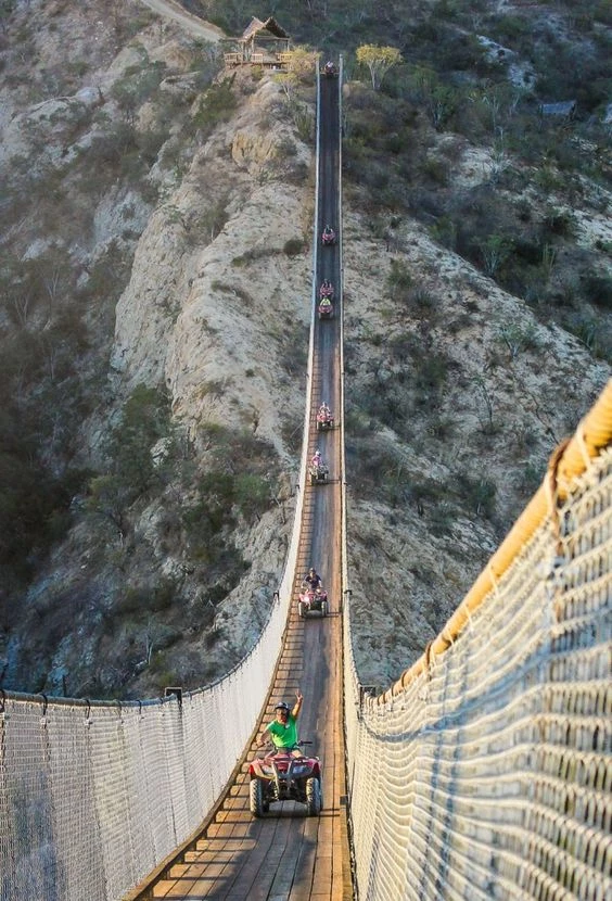 Ostenta el título de ser el puente de madera más largo del mundo, con maravillosas vistas al paisaje semidesértico de Cabo San Lucas, en la península de Baja California. Aquí además de diversas aventuras en mar y desierto, existe uno de los puentes colgantes de madera más largos del mundo, en el cual no solo pasan peatones, también 4X4, vehículos todo terreno y cuatriciclos. Ofrece un recorrido de más de 330 metros de longitud y soporta hasta 600 toneladas de peso (unas 300 personas y 50 vehículos todo terreno de manera simultánea).