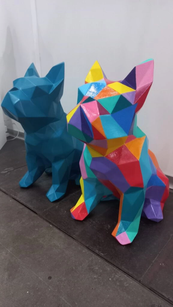 En el espacio dedicado al arte de la edición 2023 de Puro Diseño, imposible no detenerse bajo el cartel de HAAS, con su exquisita colección de esculturas en fibra de vidrio pintadas con aerosol, pincel e incluso con pintura de auto, alrededor.