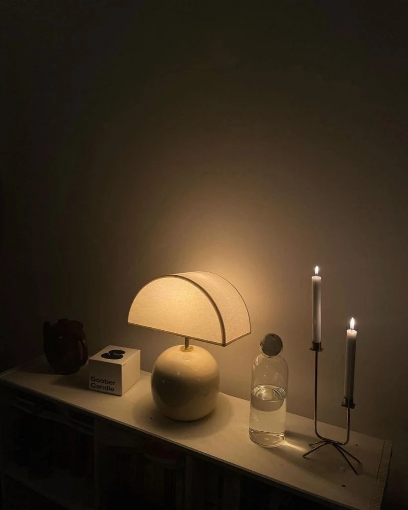 Los espejos irregulares, el florero donita y las mesas Ragun son algunos de los más icónicos y sorprendentes objetos de @_____ogg. Y de su colección más reciente nos enamoramos a primera vista de su Velador Tsuki, hecho en cerámica esmaltada y pantalla de tela.