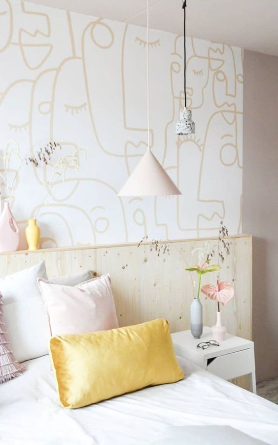 Lo más habitual es encontrar este diseño en un conjunto de cuadros que siguen una línea estética y se complementan de colores claros, pasteles y muy serenos. Sin embargo, también hay personas que se atreven a llevarlo a otro nivel y empapelan una pared con estas figuras a modo de mural.