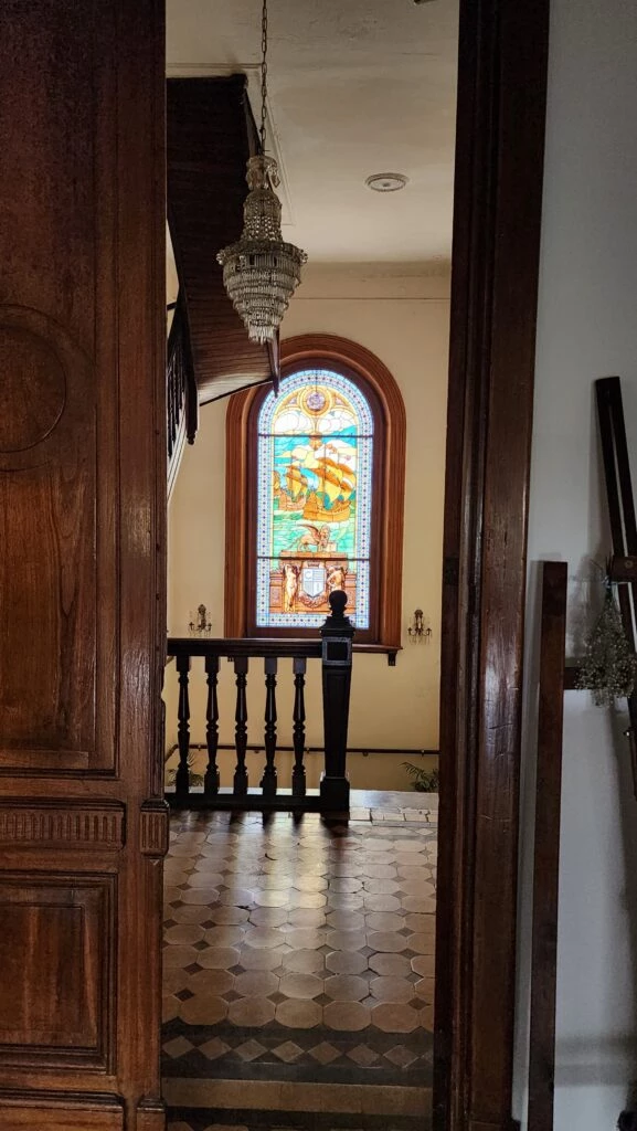 Te diría que hagas un stop acá, justo frente a la ventana con vitral, porque es el sitio perfecto para actualizar tu estado de Whatsapp o renovar tu foto de perfil.