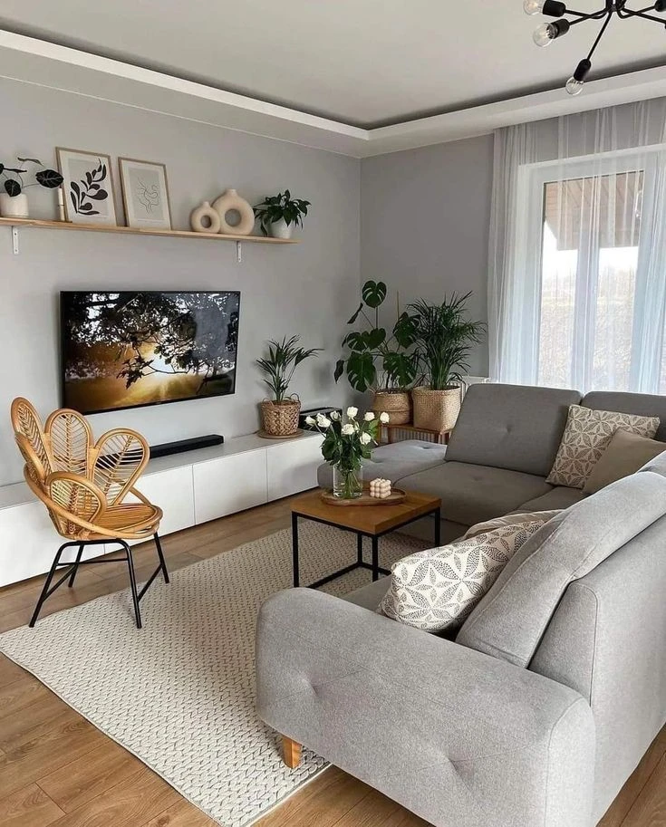 Un plus deco: si lo acompañás con cuadros o estantes flotantes arriba, el combo queda divino.