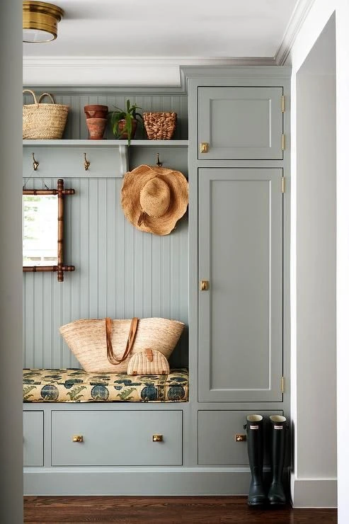 El recibidor puede ser una zona de guerra si no tiene suficiente almacenamiento. Un banco con espacio para guardar zapatos, un perchero estilizado o una repisa con cajas decorativas pueden salvarte del desorden y hacer que todo se vea prolijo.