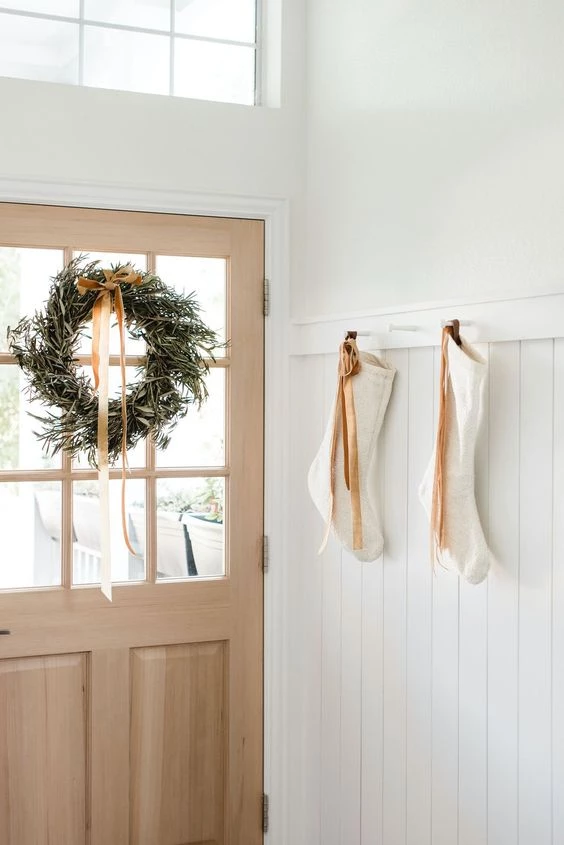 Es cierto que las coronas navideñas tienen la parte exterior de las puertas ganadas, pero... ¿por qué no colocarlas también en la parte interior y darle un toque especial al hall de entrada?.